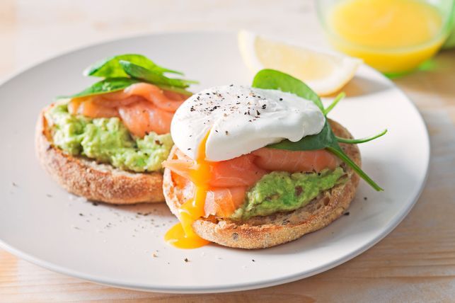 You say muffin with salmon that also has eggs with 'cream' inside?